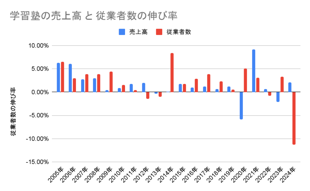 それにもかかわらず売上が堅調に推移している点は、業務効率化や生産性向上が進展していることを示しており、近年、効率化が一層進みつつあるといえます。