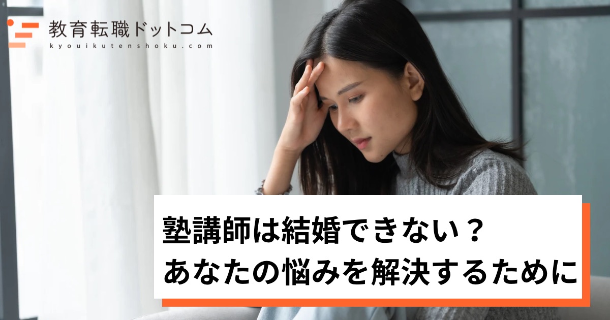 この記事では、多くの塾講師が抱える「結婚できない」という不安の正体を解明し、キャリアを捨てずに幸せな家庭を築くための具体的なアクションをお伝えします。