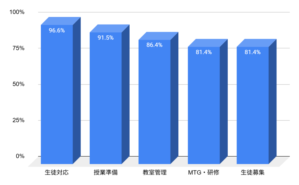 教室管理や、研修対応、生徒募集など、授業以外の業務も行う講師が多数を占めています。