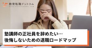転職で少しでも不安なことがあれば、ぜひ「教育転職ドットコム」にご相談ください。 教育業界に特化した転職エージェントで、塾への転職に強みを持っています。